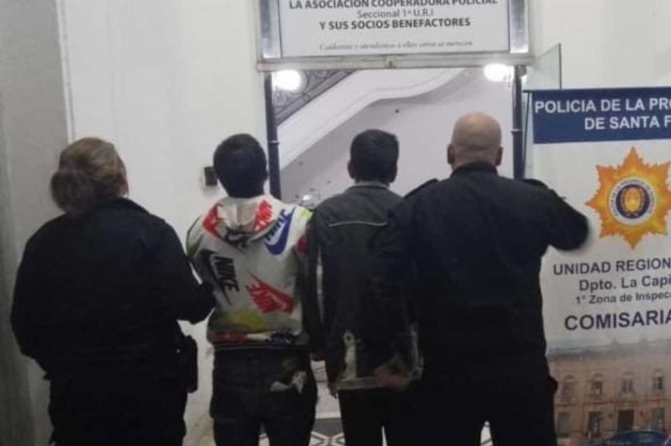 Al llegar a la intersección de Crespo y Urquiza, la policía detiene a los dos sujetos y recuperan lo sustraído. El fiscal en turno, Dr Cecchini ordenó que sean identificados dactiloscópicamente por el delito tentativa de hurto calificado por escalamiento.