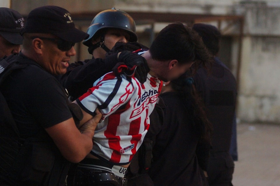 Según el reporte policial, ocurrió en el portón 11 y terminó con la detención de 19 hombres, cinco oficiales de policía heridos y un camarógrafo agredido.