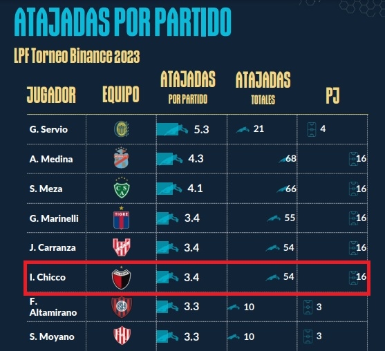 Colón está metido de lleno en el duelo del domingo ante Barracas Central en el Brigadier López, pero todavía hay saldos y retazos del capítulo pasado. Como es habitual, la Liga Profesional actualizó sus diferentes tablas estadísticas e Ignacio Chicco sigue entre los arqueros con más tajadas.