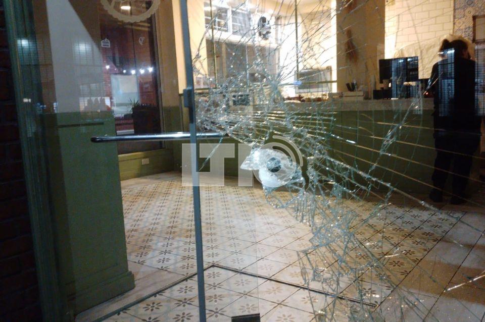 Se trata de la sucursal de una cadena de panaderías que se encuentra en San Jerónimo y Eva Perón. Marina, empleada de la firma llegó esta mañana a trabajar y se encontró con el vidrio roto.