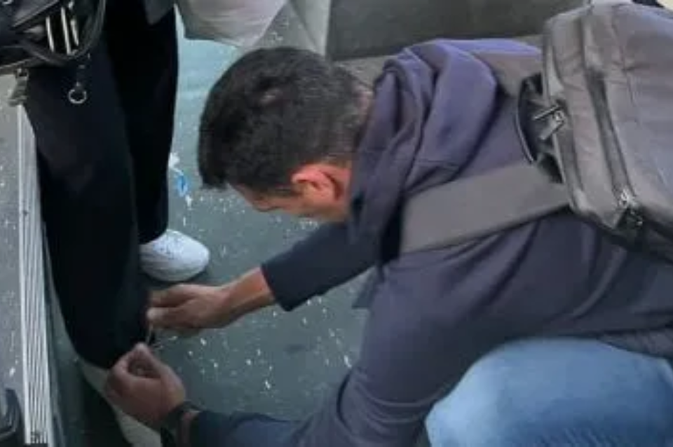 "En un principio, la señora no lo había reconocido hasta que él le dice: 'Espere que le ato los cordones para que no se caiga'. Cuando se levanta, el marido lo reconoce y enseguida fueron a