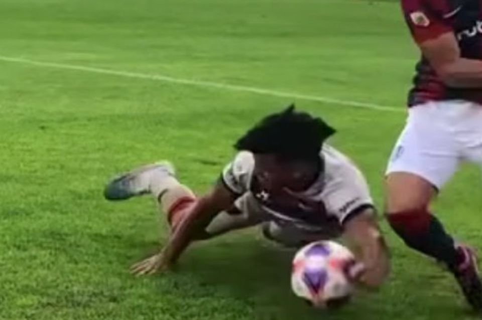 Rafa Delgado quiso cubrir la posición y al caerse tocó la pelota con la mano, pero para Darío Herrera fue sin intención.#LPFxTNTSports pic.twitter.com/a7TgcrWNv8