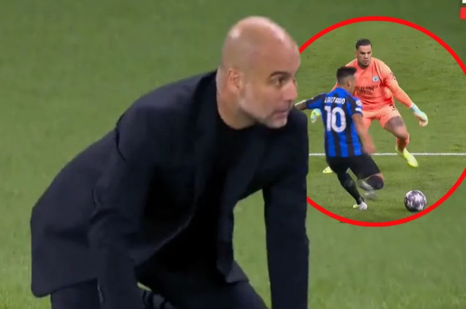 Como lo ameritaba la situación, los corazones de los fanáticos del Manchester City se paralizaron ante la situación. Pep Guardiola, director técnico, no fue la excepción. El español se tomó el rostro y, a medida que Lautaro avanzaba con el balón, se tendió de rodillas al verde césped. Por suerte para él, el arquero mantuvo su arco en cero.