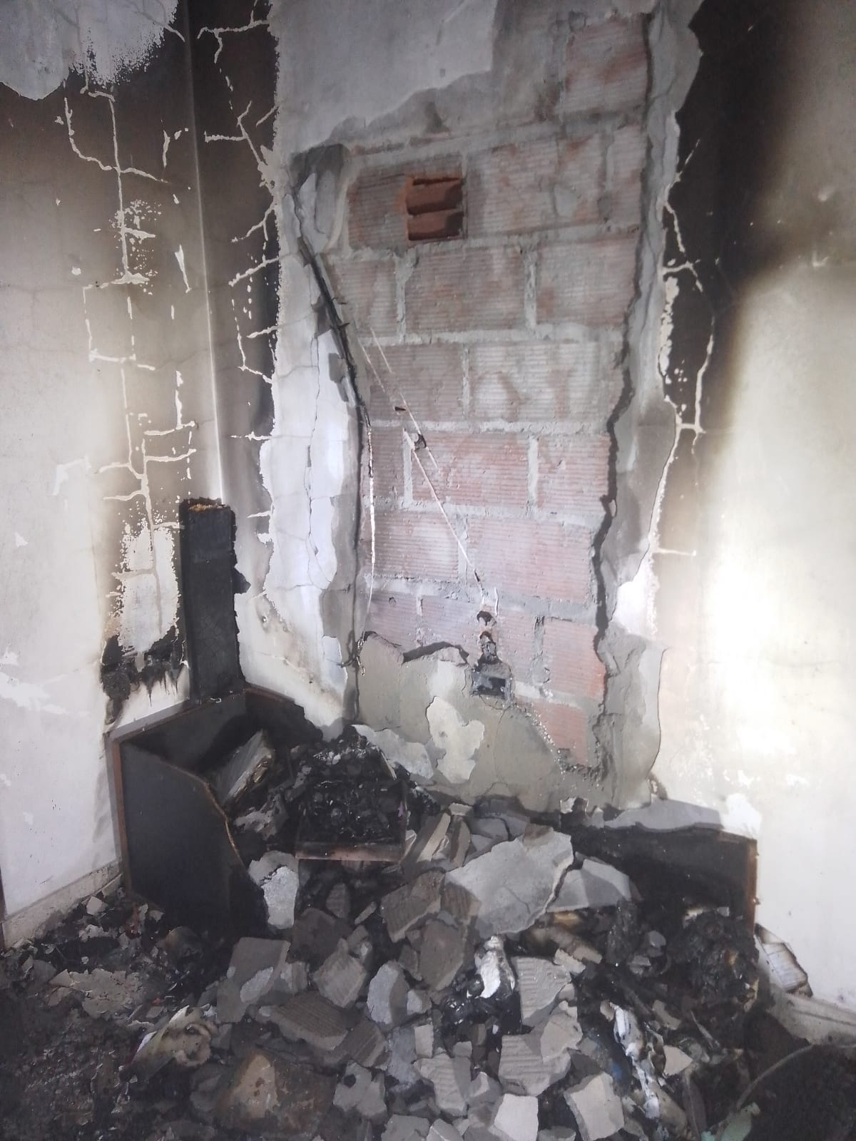 El foco del incendio estaba en un rincón del comedor provocando la destrucción total de un rack de TV de madera, un televisor de 50 pulgadas, una playstation y una zapatilla eléctrica. En tanto, se afectaron de forma parcial un ventilador de techo, una mesa de madera y parte de la pared de la que se desprendió el revoque.