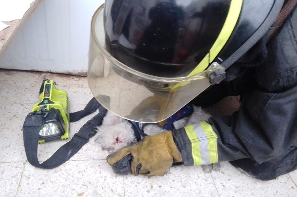 Sin embargo, el más afectado fue un perro de raza caniche que había quedado atrapado en el interior de la vivienda y que se encontraba en grave estado. Rápidamente, uno de los bomberos le realizó masajes de reanimación y oxigenación y logró salvarle la vida.