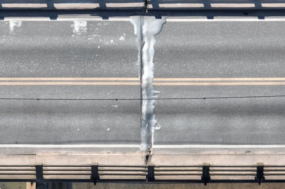 El deterioro se encuentra en una de las juntas del puente, a unos 15 metros de la bajada hacia el barrio Varadero Sarsotti, en la mano hacia la ciudad de Santa Fe.