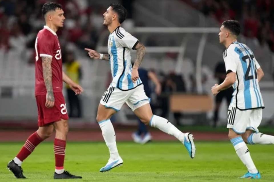 Cambios en el segundo tiempo: al inicio Pratama Arhan por Pattynama (I), Dendy Sulistyawan por Drajad (I); 15m Alejandro Garnacho por González (A), Marcos Acuña por Medina (A); 18m Witan Sulaeman por Struick (I); 28m Lucas Ocampos por Buonanotte (A); 39m Giovanni Simeone por Álvarez (A), Thiago Almada por Palacios (A), Guido Rodríguez por Paredes (A); Yakob Sayuri por Jenner (I).