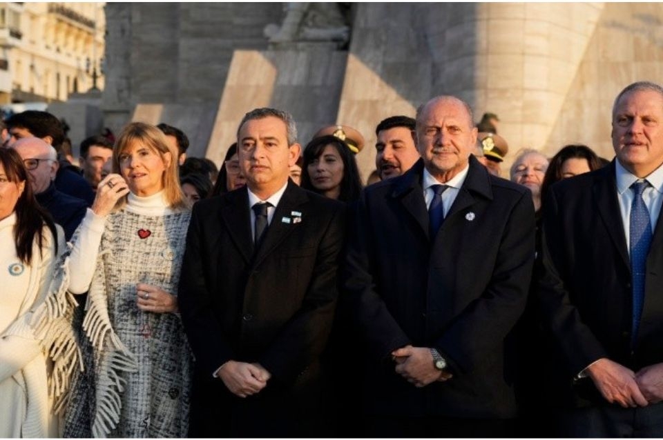 Bajo la misma bandera, la celeste y blanca, el gobernador Omar Perotti y el intendente Pablo Javkin unieron sus voces contra el gobierno nacional, con escasa presencia de funcionarios en el Monumento a la Bandera, donde se llevaba a cabo el acto en homenaje a su creador, Manuel Belgrano, quien falleció este mismo día, en 1820. Ambos coincidieron en sus discursos en reclamar a la Nación una pronta y efectiva intervención que permita terminar con la narcocriminalidad en Rosario. Pero, el jefe de gobierno local también apuntó a la gestión provincial sin olvidarse su responsabilidad en la acción policial y aprovechó para exigir la autonomía.