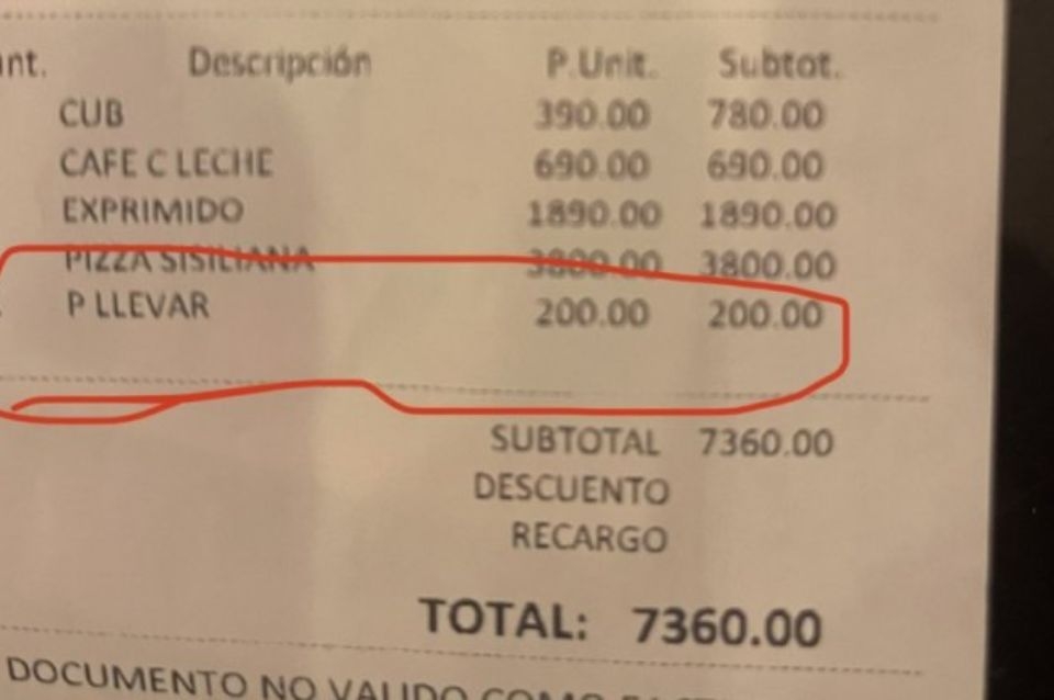 Un joven pidió llevarse a su casa los restos de la pizza que no llegó a comer en un restaurante de Comodoro Rivadavia y que habían sobrado, pero le cobraron 200 pesos de recargo y cuando pidió explicaciones, le respondieron que era porque "aumentaron las bandejas de plástico".