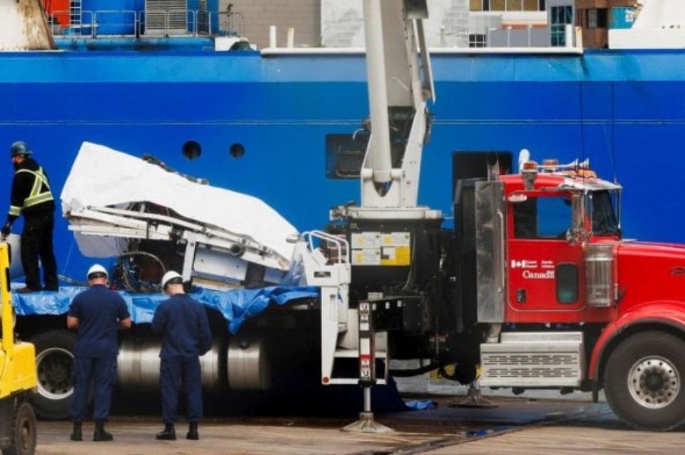 Las partes destrozadas del Titán sumergible, destruido mientras se dirigía hacia los restos del Titanic, de un siglo de antigüedad, fueron transportados a St. John's, Newfoundland, a unos 650 kilómetros al norte del lugar del accidente, por el buque de bandera canadiense Horizon Arctic, según la Guardia Costera.