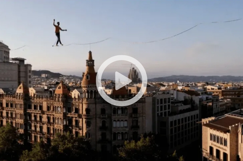Este funambulista sorprendió al mundo sobre la cuerda floja a 70 metros de altura en Barcelona.