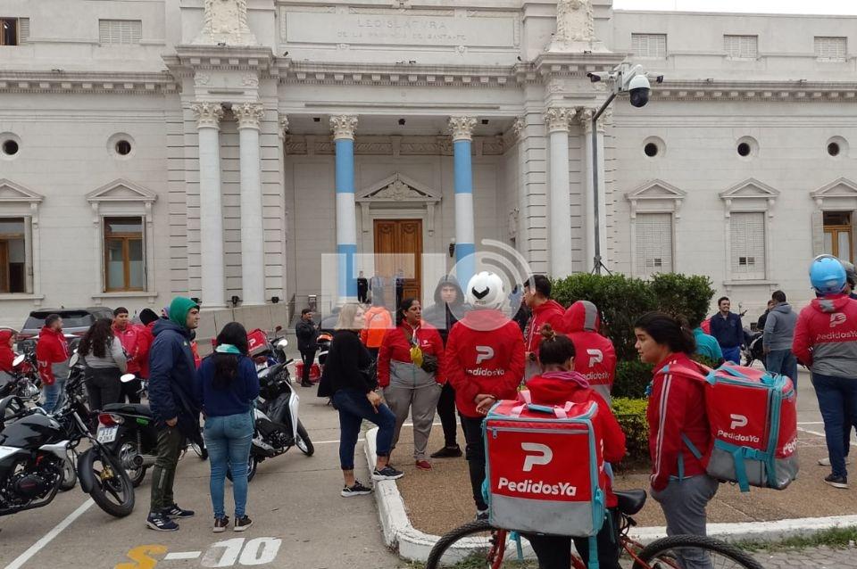 Este jueves, deliveries se manifestaron frente a la Legislatura para pedir que se avance en la aplicación de una prueba piloto de colocación de GPS y botón de pánico a 400 cadetes y para pedir a los Senadores la urgente aprobación de la Ley de Deliverys Seguros que tiene media sanción de Diputados y todavía no ha sido tratada en la Cámara Alta.