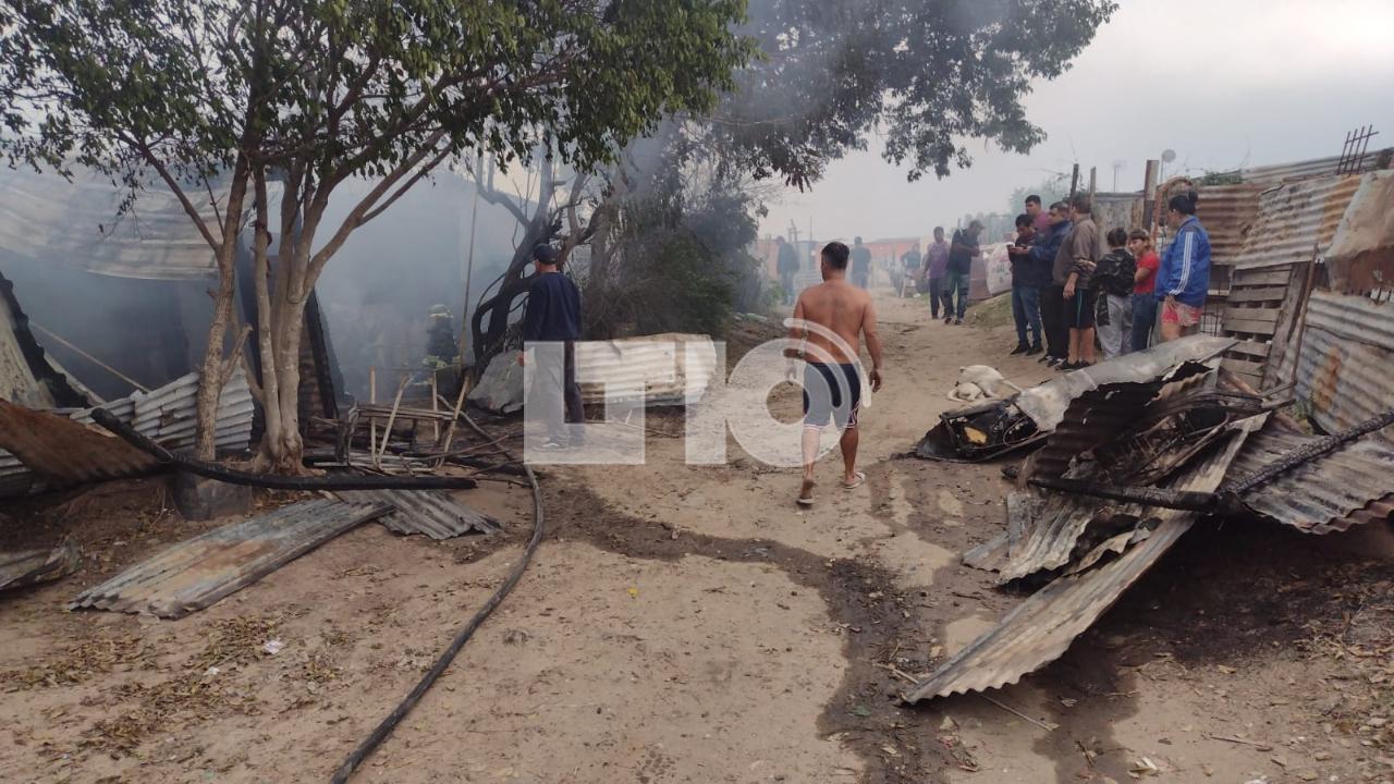El Móvil de LT10 llegó hasta el lugar y se encontró con las llamas que consumían las casas. Una primera versión indica que el fuego habría sido intencional y provocado por un menor de edad que accedió por la parte trasera y arrojó un líquido inflamable.