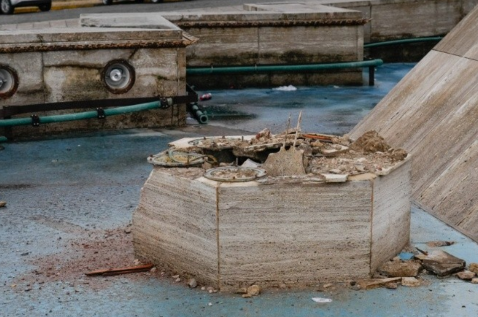 Para retirar esto es que destruyeron una parte del octógono central de la fuente y también de las cañerías de circulación de agua.