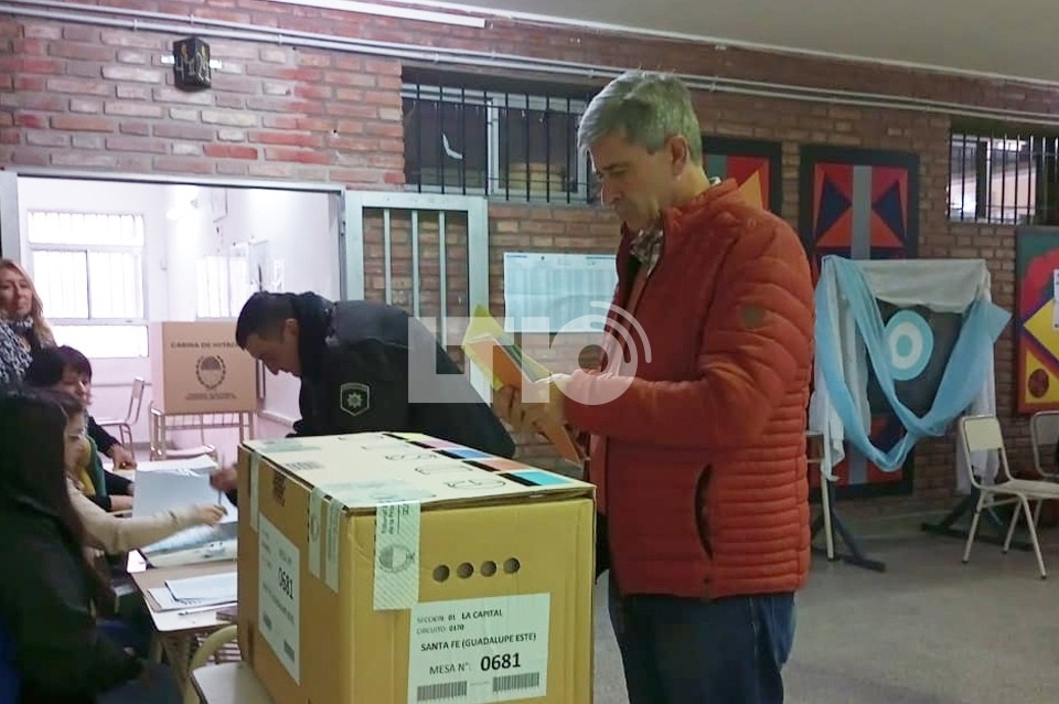 El precandidato a senador por el departamento La Capital, Hugo Marcucci emitió su voto en la escuela Zapata Gollán de la ciudad de Santa Fe a pocos minutos de abrir las votaciones.