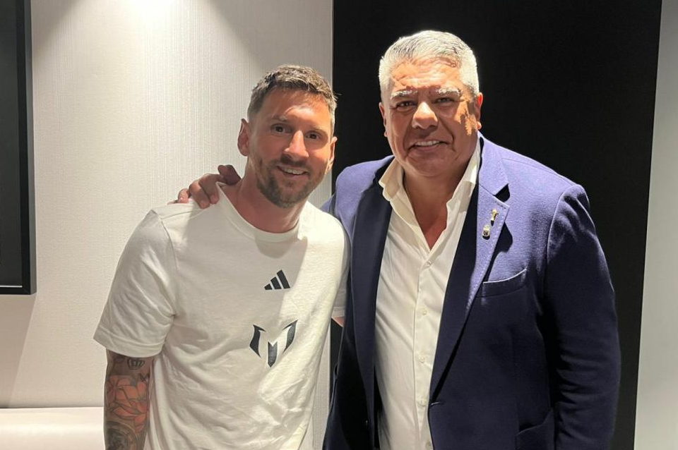 El dirigente más preponderante del fútbol argentino actual no quiso perderse la fiesta que se desarrolló este domingo en el DRV PNK Stadium de Fort Lauderdale, en donde el astro rosarino fue agasajado como flamante incorporación de la franquicia del estado de la Florida, ante casi 20 mil personas.