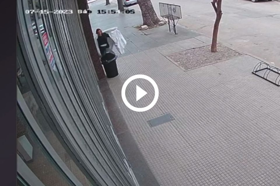 #Video: una mujer envuelta en una sábana se roba tachos de basura en varios locales de Boulevard