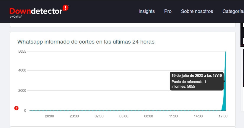 Según el sitio Downdetector la app comenzó a tener fallas a las 16:45 hs. momento en que llegaron reportes de demoras en las versión móvil y de escritorio.
