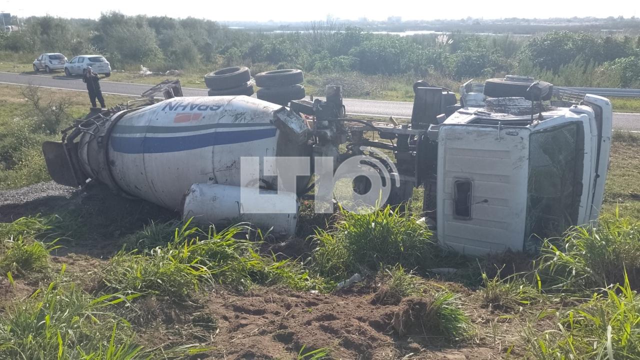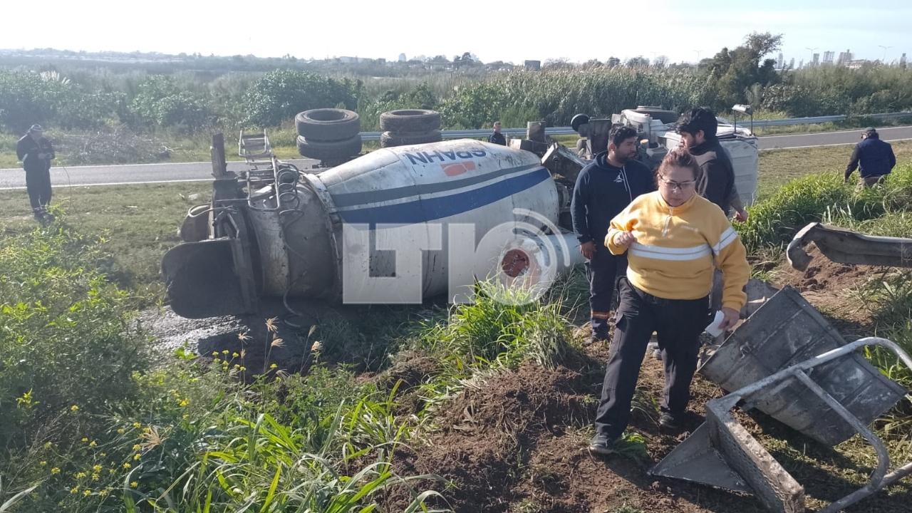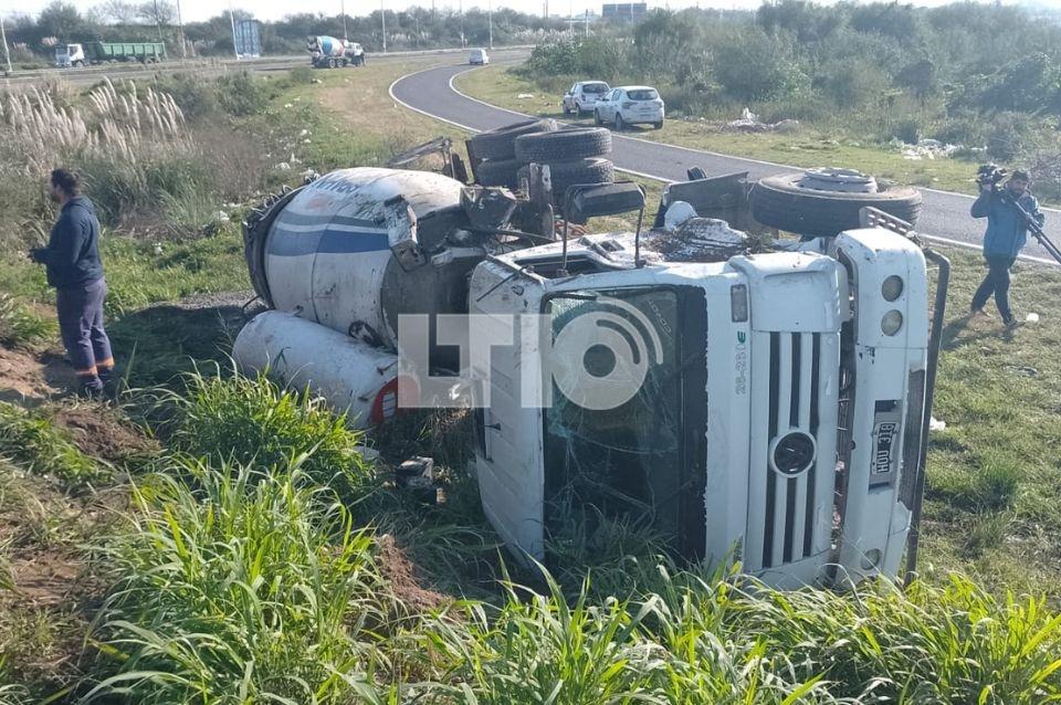 Según contó un compañero del conductor, se trata de un camión hormigonero que llevaba el contenido hasta la colectora de Aires del Llano que se encuentra en construcción.