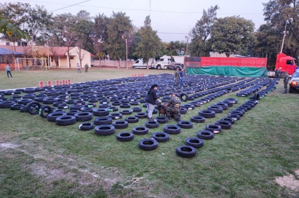En total transportaba 628 cubiertas valuadas en $37.000.000 y 10 cajas con cigarrillos cuyo valor supera los $2.000.000.