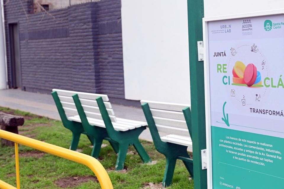 En el complejo educativo ubicado en General Paz y Risso se llevó a cabo la campaña "Juntá, reciclá, transformá" que impulsa la Municipalidad y consiste en recolectar tapitas para transformar el plástico en juegos o mobiliario. A esta propuesta se sumaron los comerciantes de la avenida y como cierre, se entregaron y colocaron cuatro bancos.