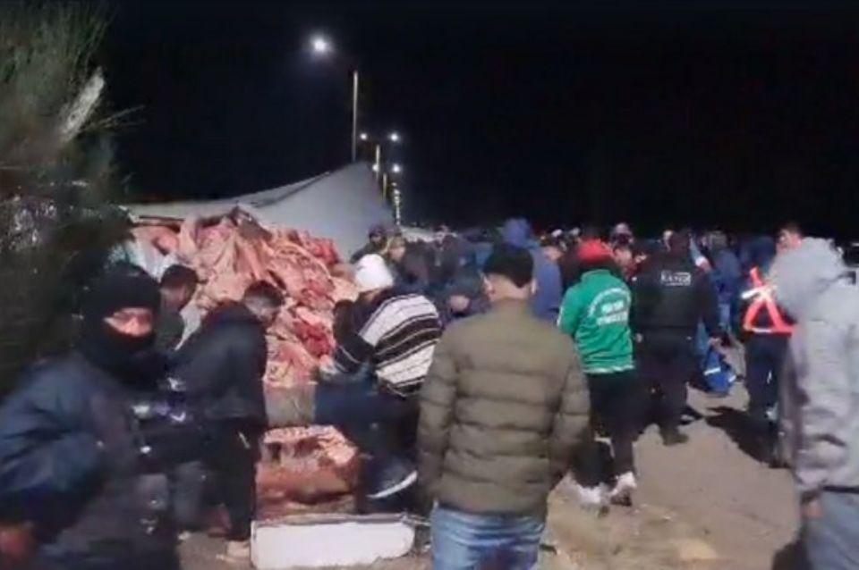 Un camión que transportaba más de 23 mil kilos de carne volcó en la ruta, luego de que el conductor perdiera el control del mismo, y los vecinos saquearon el rodado de gran porte en San Luis.