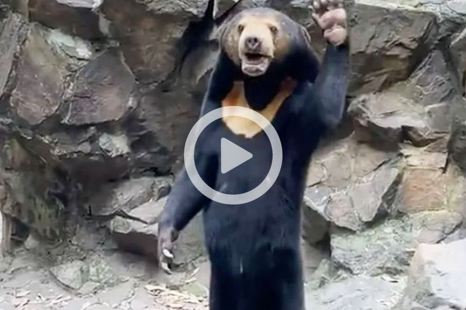 Un oso malayo del zoológico de Hangzhou, en el este de China, se volvió viral en las redes sociales del país por su aspecto humano y su habilidad para caminar erguido sobre sus patas traseras.