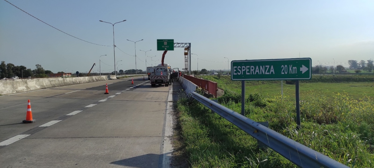 Dentro del mismo rubro de refuerzo del señalamiento, en particular sobre la prohibición de paso de tránsito pesado por el Puente Carretero, personal del 7º Distrito Santa Fe colocó varios carteles de advertencia en la zona del intercambiador con RN A007, frente a Cilsa. Esta señalización recuerda la restricción del paso de camiones con acoplado, semirremolques o bateas por el puente, medidas para resguardar su estructura.
