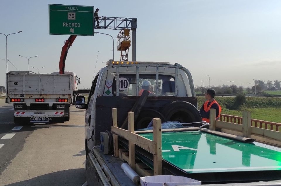 En tal sentido, se colocaron ménsulas y carteles en el empalme con Ruta Provincial 70, en Recreo, con trabajos que continuarán durante los próximos días en diversos sectores.