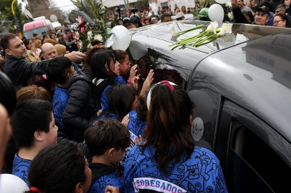 Tras ello, el coche fúnebre continuó su camino en dirección al cementerio situado en Coronel Aguilar al 3000, del mismo partido bonaerense, ante la mirada de numerosas personas que se encaminaron detrás, acompañando a pie y en silencio su paso.