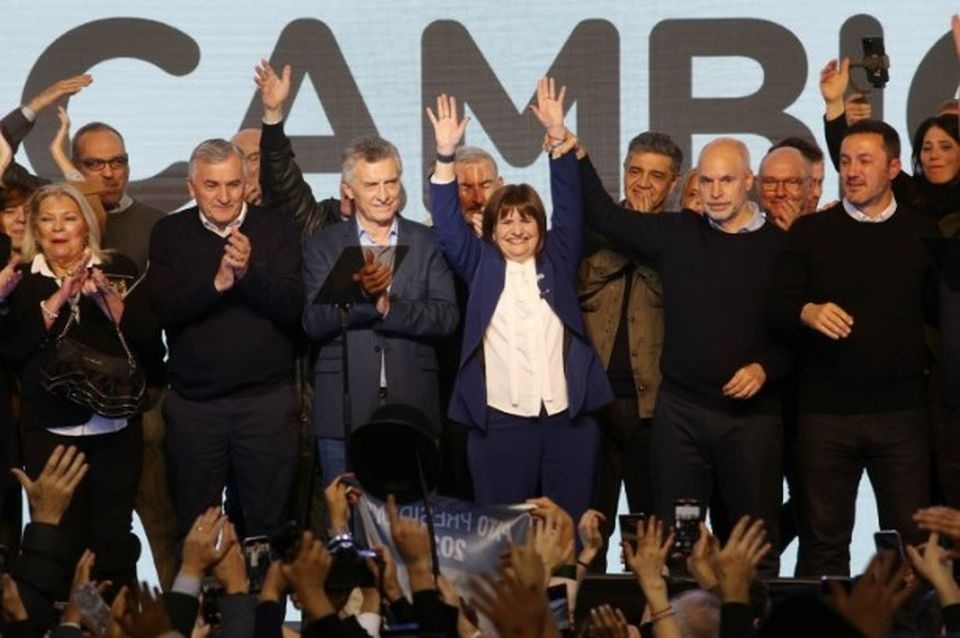 En otro pasaje de su discurso triunfal, la titular del PRO se mostró agradecida por la participación de la fórmula compuesta por Horacio Rodríguez Larreta y Gerardo Morales, y los invitó a subir al escenario mientras la militancia coreaban "hay que saltar, el kirchnerismo no existe más".
