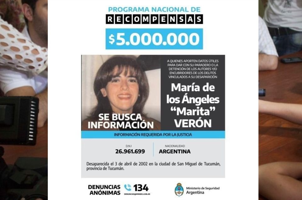 "Ofrézcase como recompensa, dentro del territorio de la República Argentina, la suma de 5.000.000 de pesos, destinada a aquellas personas que, sin haber intervenido en los hechos delictuales, brinden datos útiles que permitan dar con el paradero de María de los Ángeles Verón o lograr la detención de quienes hubiesen tomado parte en la ejecución de los delitos vinculados a su desaparición y/o sus encubridores", señala el texto difundido.
