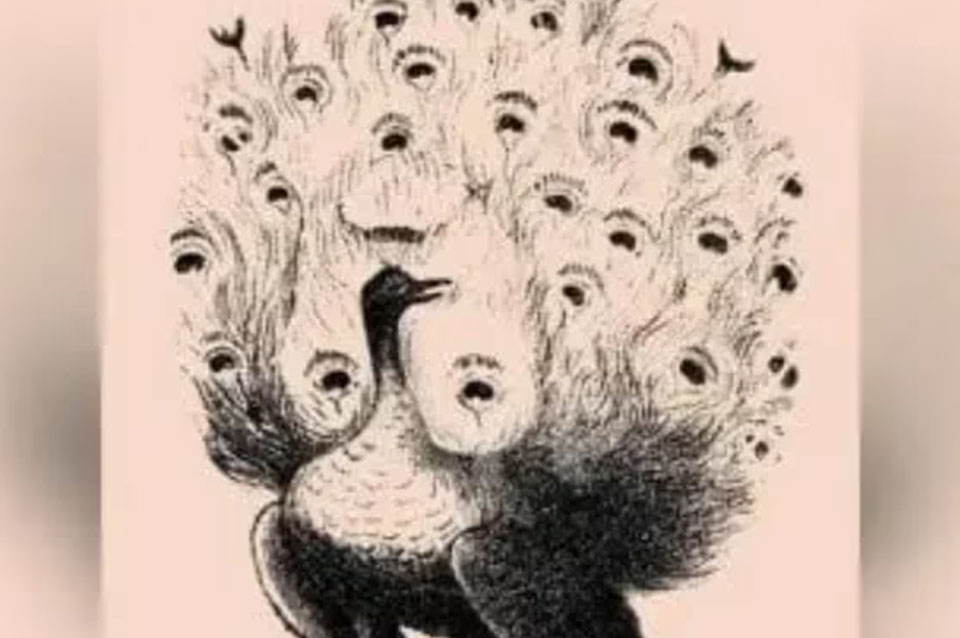 Reto visual: encontrá el rostro del hombre escondido en el pavo real