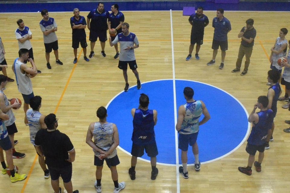 En el arranque de los trabajos fue el entrenador Sebastián Ginóbili quien dirigió unas palabras en el medio de la cancha dejando algunos conceptos de lo que pretende del equipo y también graficando cómo se desarrollará el trabajo de la semana.