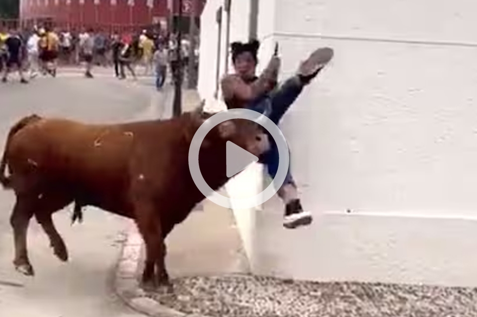 En las imágenes captadas por algunos de los presentes se puede ver cómo el toro comienza a correr por la calle y al girar en una esquina rápidamente intercepta a una mujer que se encontraba mirando su celular.