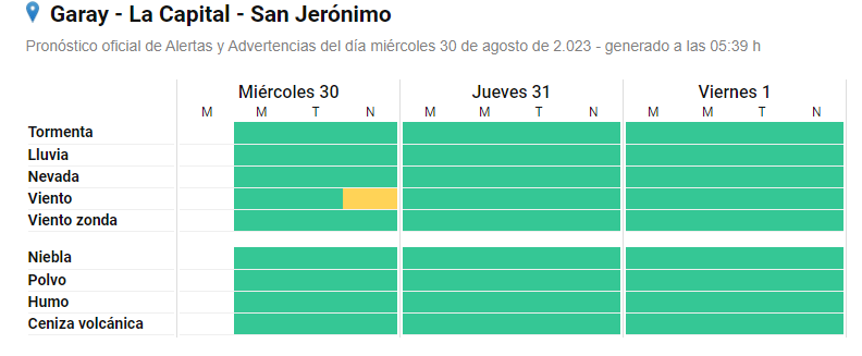 El Servicio Meteorológico Nacional emitió un alerta por viento que afecta a los departamentos La Capital, Garay y San Jerónimo.