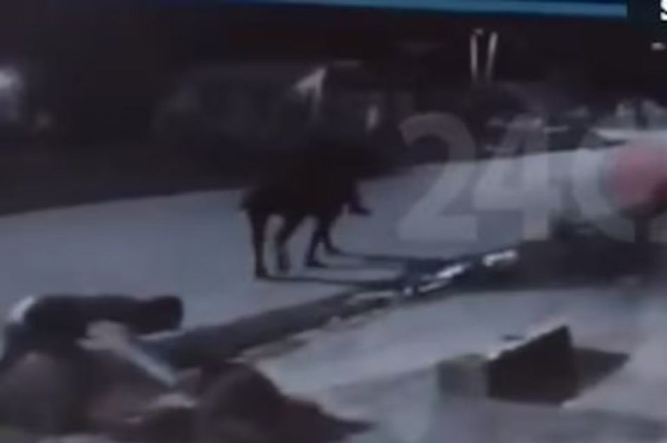Las imágenes muestran que el hombre circula por la calle y de repente aparecen los dos ladrones montados en un caballo que galopan a toda velocidad y comienzan a perseguirlo. Lo interceptan y automáticamente uno de ellos se baja y le arrebata el celular y su billetera. Luego se escaparon.