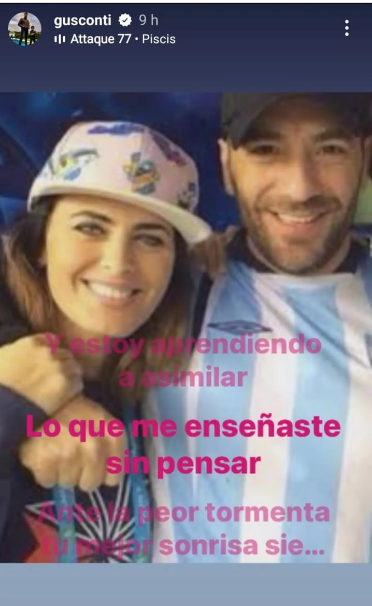 Conti subió una foto suya con Luna y la acompañó de una canción de Ataque 77 llamada Piscis. La misma reza: “Y estoy aprendiendo a asimilar, lo que me enseñaste sin pensar, ante la peor tormenta, tu mejor sonrisa siempre. Hasta el fin, hasta el fin”.