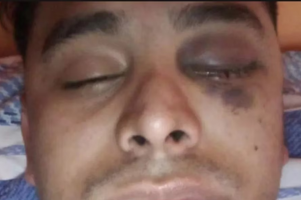 Ante esta situación el joven decidió correr hasta el cuarto para agarrar su celular y grabar la situación: "Ahí me apuntó y luego me amenazó que si no me iba era capaz de matarme. Acto seguido me dio un culatazo en el ojo y me sacó el celular".