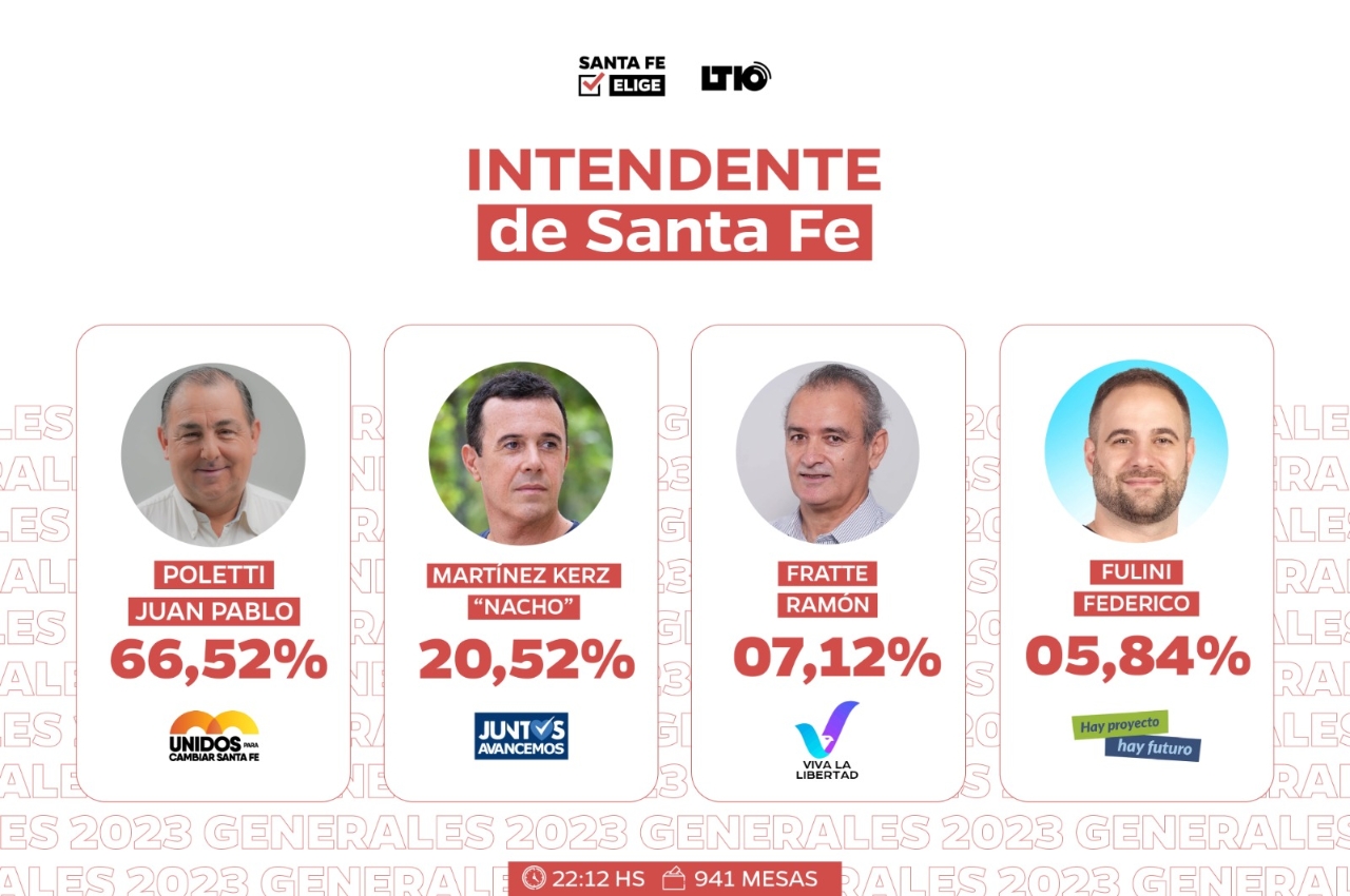 Los santafesinos decidieron este domingo en las urnas que el próximo intendente de Santa Fe Juan Pablo Poletti (Unidos para cambiar Santa Fe), que se impuso ampliamente por sobre Ignacio Martínez Kers, el candidato de Juntos Avancemos.