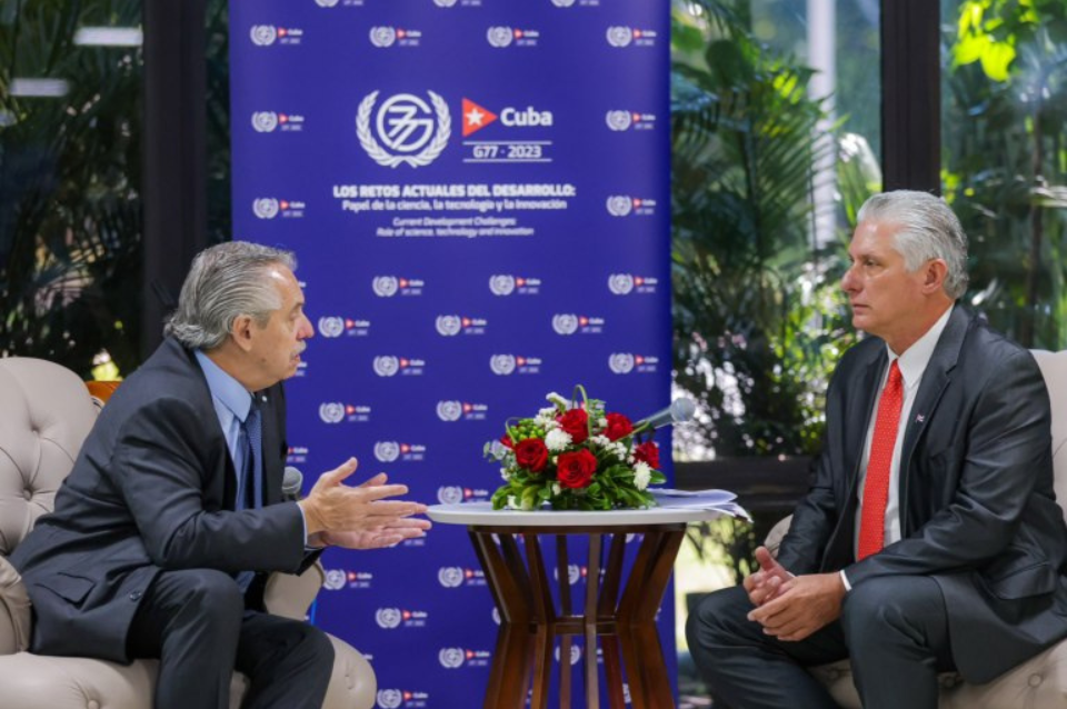 El presidente Alberto Fernández mantuvo un encuentro bilateral con su par cubano, Miguel Díaz Canel, en el marco de su agenda oficial en La Habana, donde se desarrolla la cumbre del G77+China.