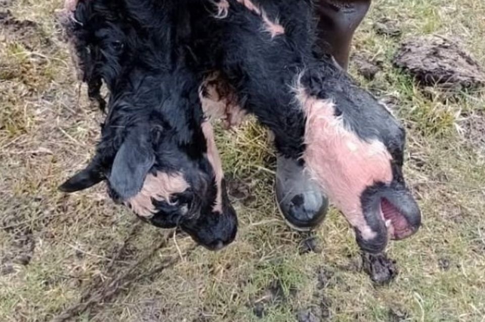 Un ternero con dos cabezas nació en la ciudad chubutense de Cholila y las fotos difundidas por un usuario de Facebook causaron la reacción de muchas personas al ver las imágenes del animal.