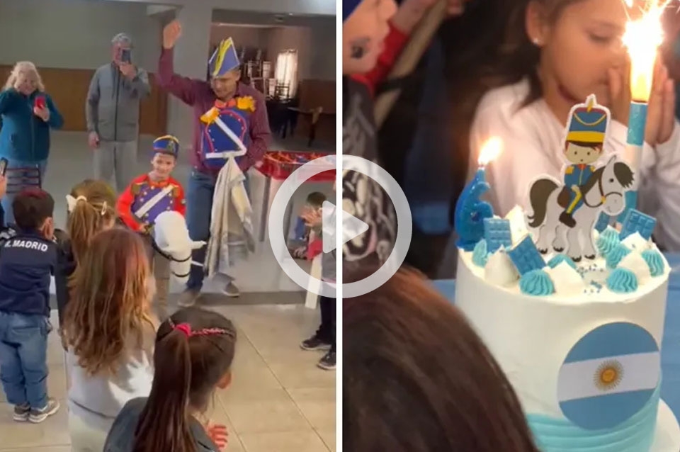 El video de una usuaria de TikTok se volvió viral al contar que su ahijado decidió celebrar su cumpleaños de 6 con temática del José de San Martín, el prócer argentino. Con la Marcha de San Lorenzo de fondo, el niño hizo su entrada triunfal disfrazado de militar y montando un caballo blanco de juguete.