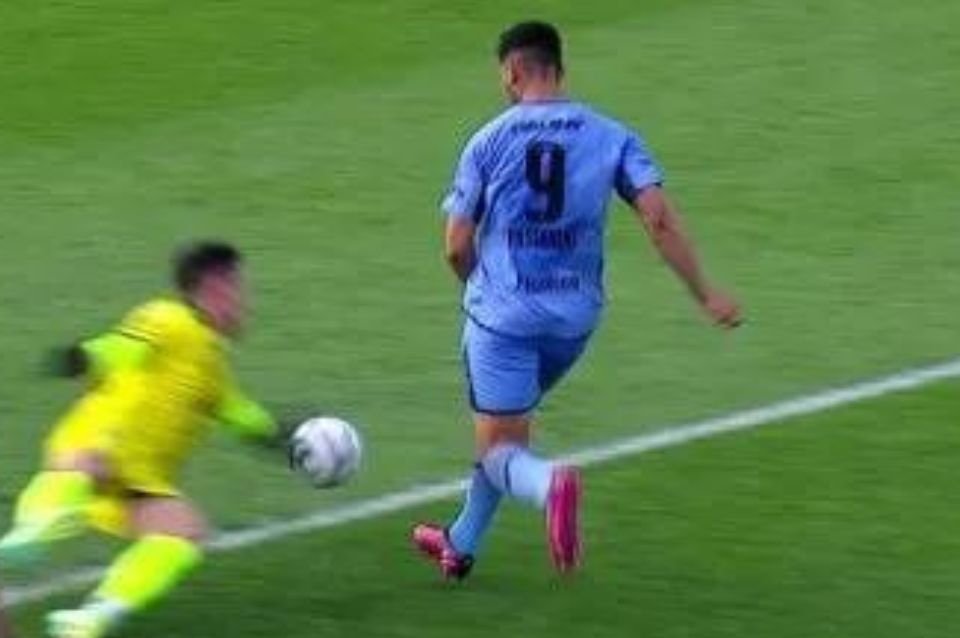El movimiento del arquero sarmientista se dio con un impulso hacia atrás, por lo que Gariano dio continuidad a la jugada, que finalizó en lateral para Belgrano, y el VAR avaló la sanción porque no apareció ninguna imagen que demuestre lo contrario.