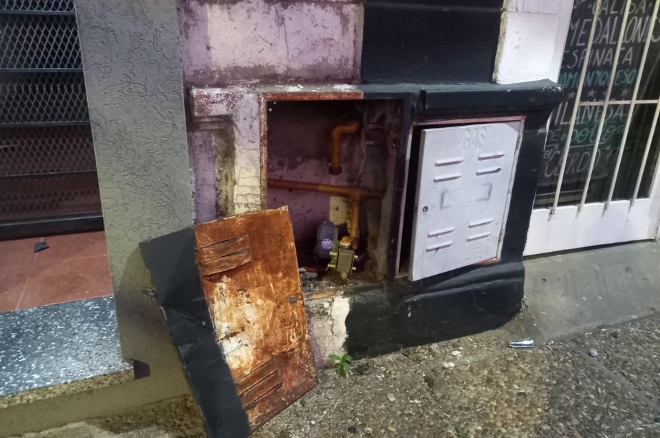 Los vehículos son un auto y una camioneta utilitaria. Por razones que se desconocen, chocaron y uno de los coches terminó impactando contra la cabina de gas de una vivienda.