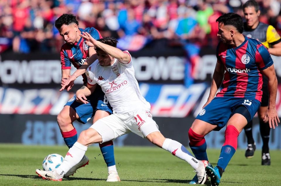 Después de esos cimbronazos, el partido se acomodó como se preveía, con Huracán con una leve ventaja en la posesión y San Lorenzo a la espera de la salida rápida por izquierda con Barrios y Malcom Braida.