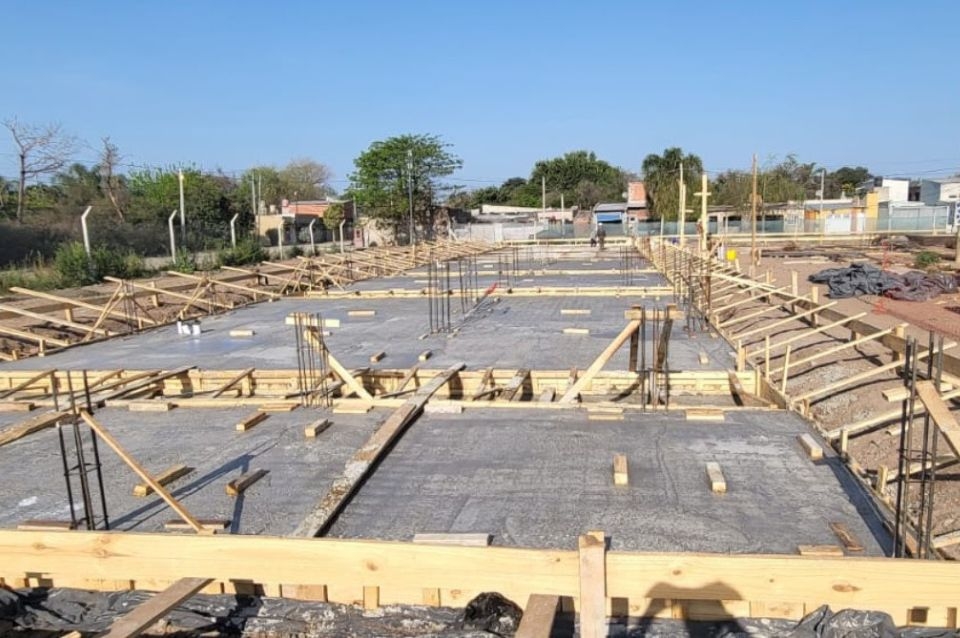 En el mes de agosto los trabajos preliminares sumaron un importante avance de obra y en el mes de septiembre se dio inicio formal a la obra donde comenzaron los trabajos de fundaciones con un promedio total de 60 operarios y otros 7 profesionales en obra, quienes ya se encuentran trabajando en lo que respecta a plateas de hormigón armado, realizando el armado de hierros y el colado del hormigón.