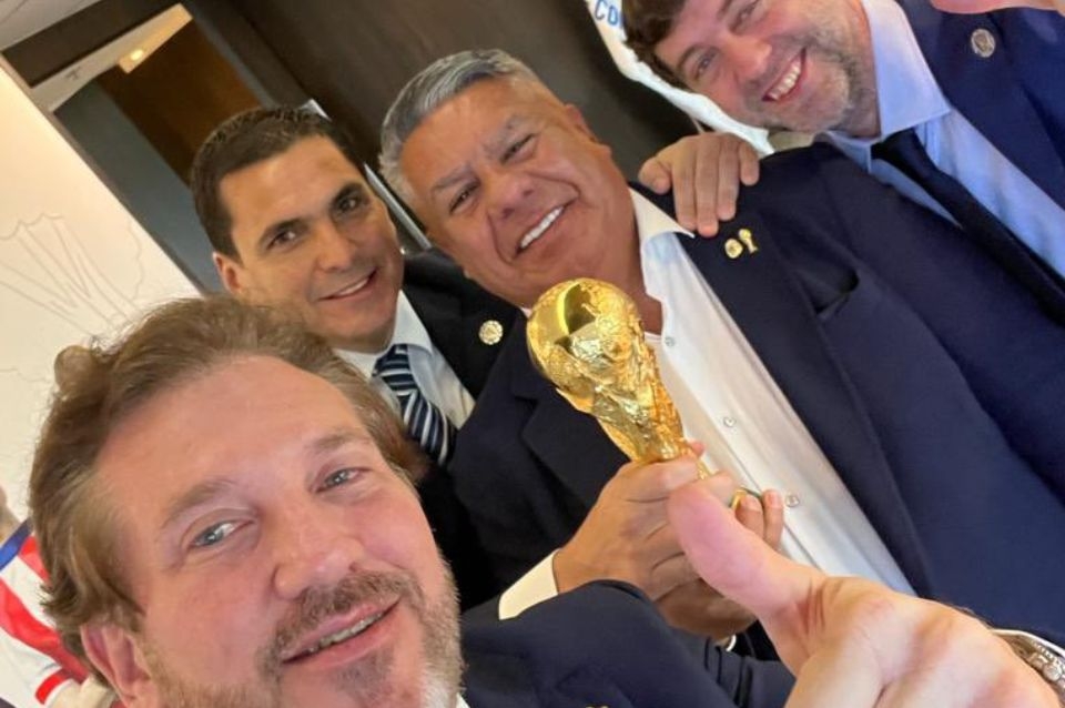 Junto al presidente de la AFA, Claudio Tapia, y los mandatarios de la Asociación Uruguaya de Fútbol (AUF), Ignacio Alonso, y la Asociación de Fútbol de Paraguay (AFP), Robert Harrison, el paraguayo Domínguez celebró la decisión del consejo de la FIFA de conceder tres partidos del Mundial 2030 para Sudamérica que se completará en España, Portugal y Marruecos.