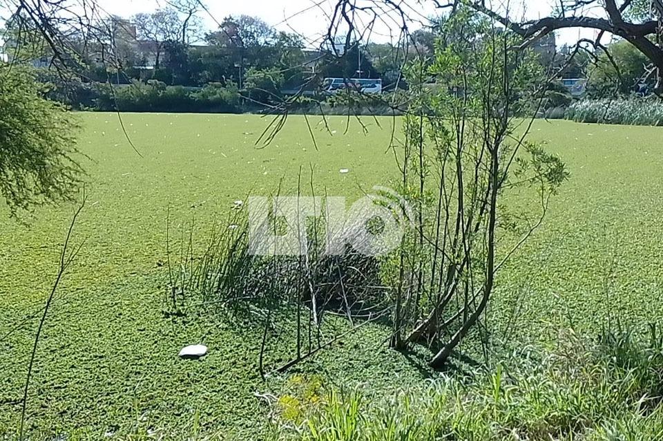 El emblemático lago del Parque del Sur está cubierto de camalotes y repollitos de agua. La preocupación, además del impedimento de las actividades deportivas que se practican, está en que si este tipo de vegetación se acumula en el fondo no se produce la transmisión solar.