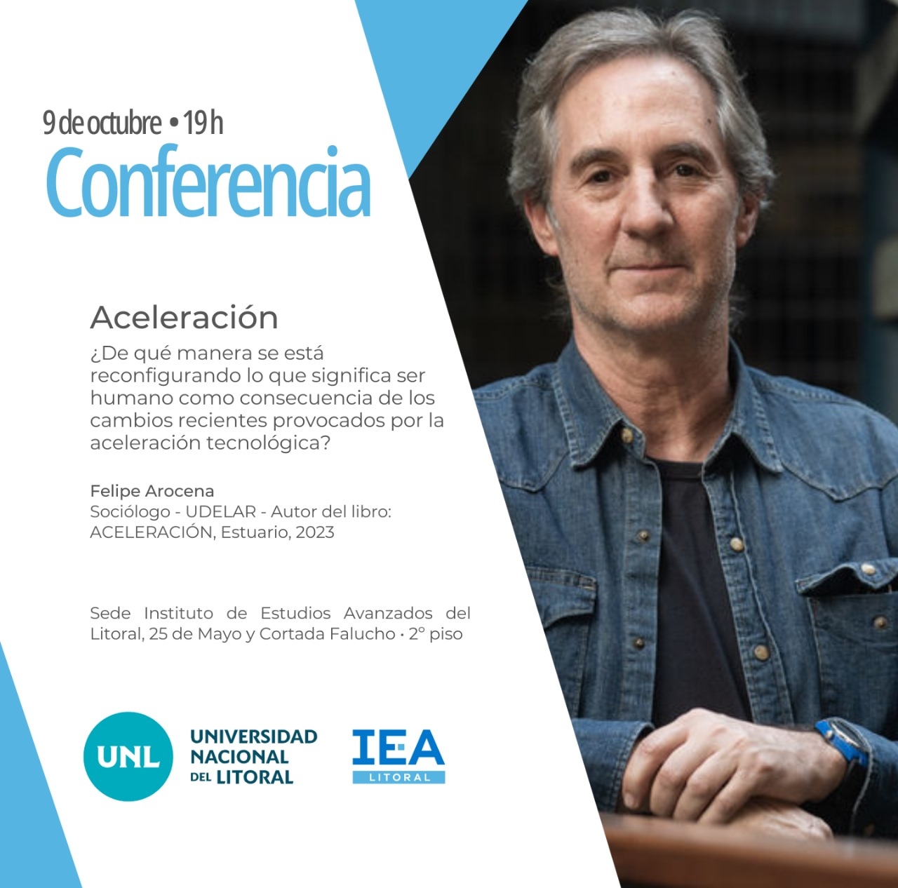 El sociólogo y ensayista uruguayo Felipe Arocena presenta su libro “Aceleración”. Lo hará en el Instituto de Estudios Avanzados del Litoral, ubicado en calle 25 de Mayo y Cortada Falucho, este lunes 9 de octubre a las 19hs.